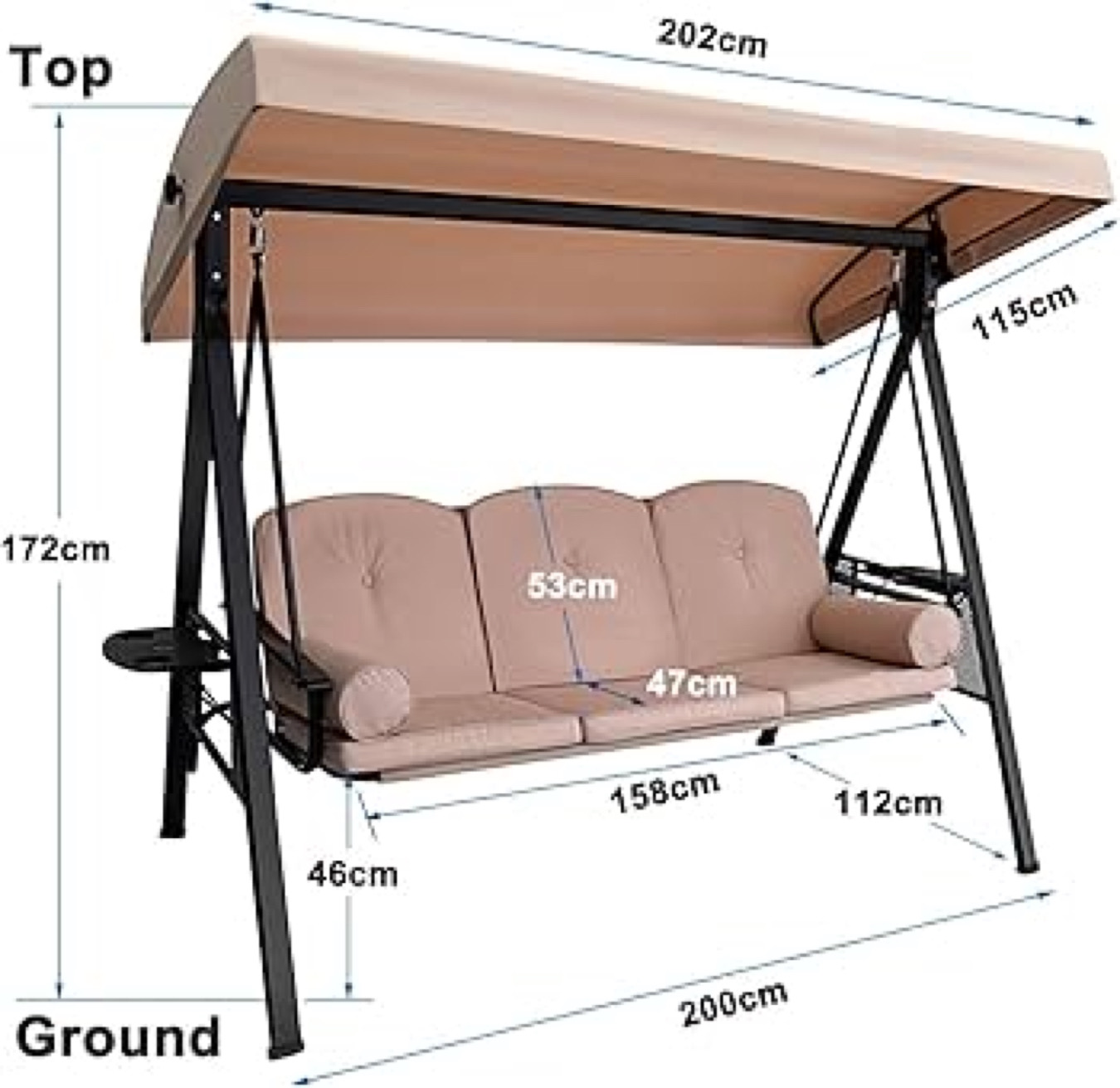 The canopy is made from polyester fabric to provide UV and sunlight protection; the angle of the canopy can be adjusted to different directions, keeping cool on the hottest day