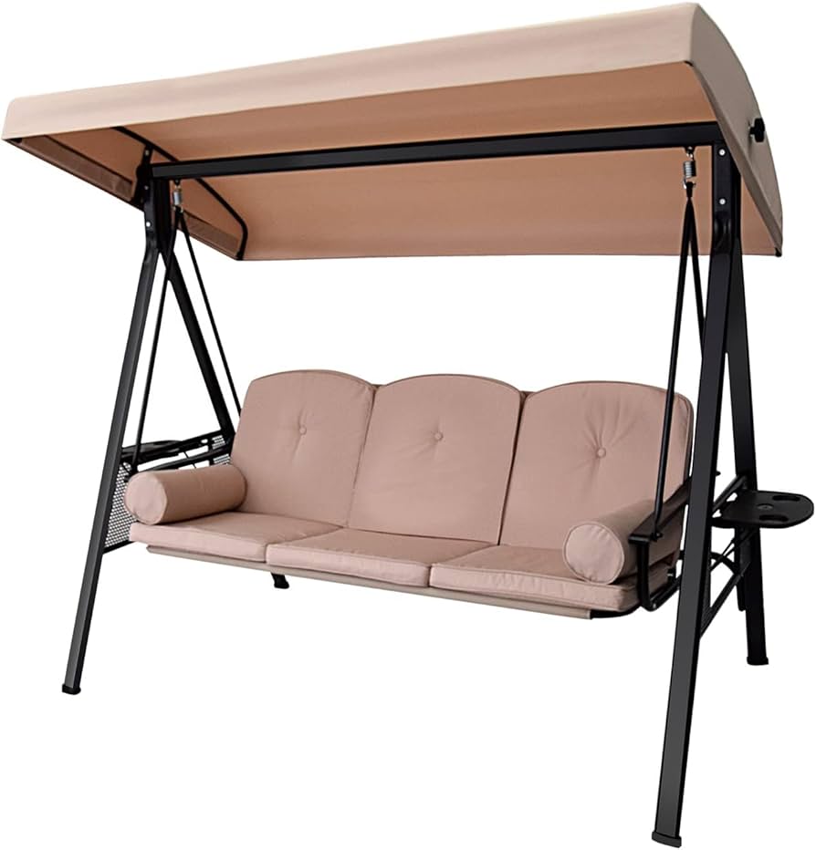 Patio+Swings High-Quality Garden Swing Sets Canopy Iron Seater tufted Cushion Beach Swing Chair Padding.