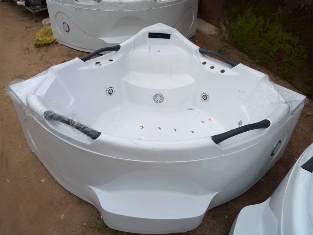 The 4-Handle Curved Jacuzzi – Model P20 offers a luxurious, spacious bathing experience with four ergonomic handles, therapeutic jets, and a sleek design, perfect for any modern bathroom.