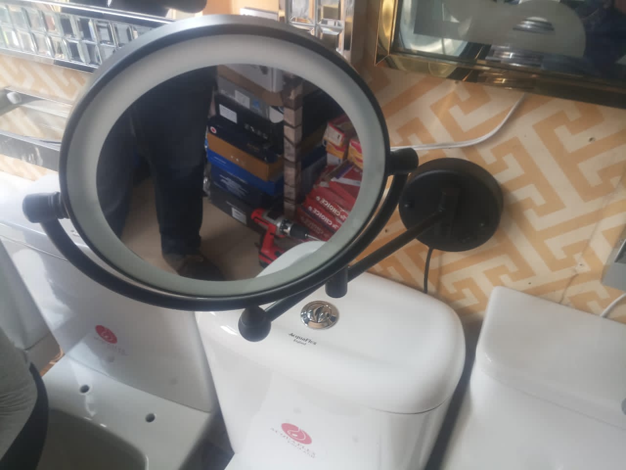 - Black round LED magnifying mirror