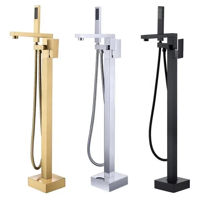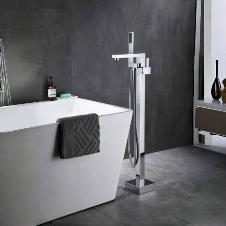 - Chrome Freestanding Square Floor-Mount Bath Mixer